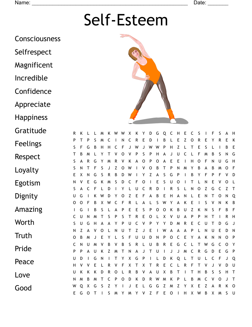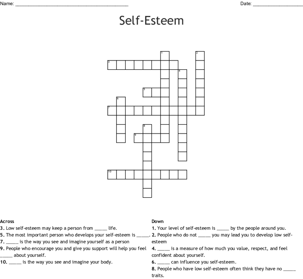 Self Esteem Crossword Puzzle Printable