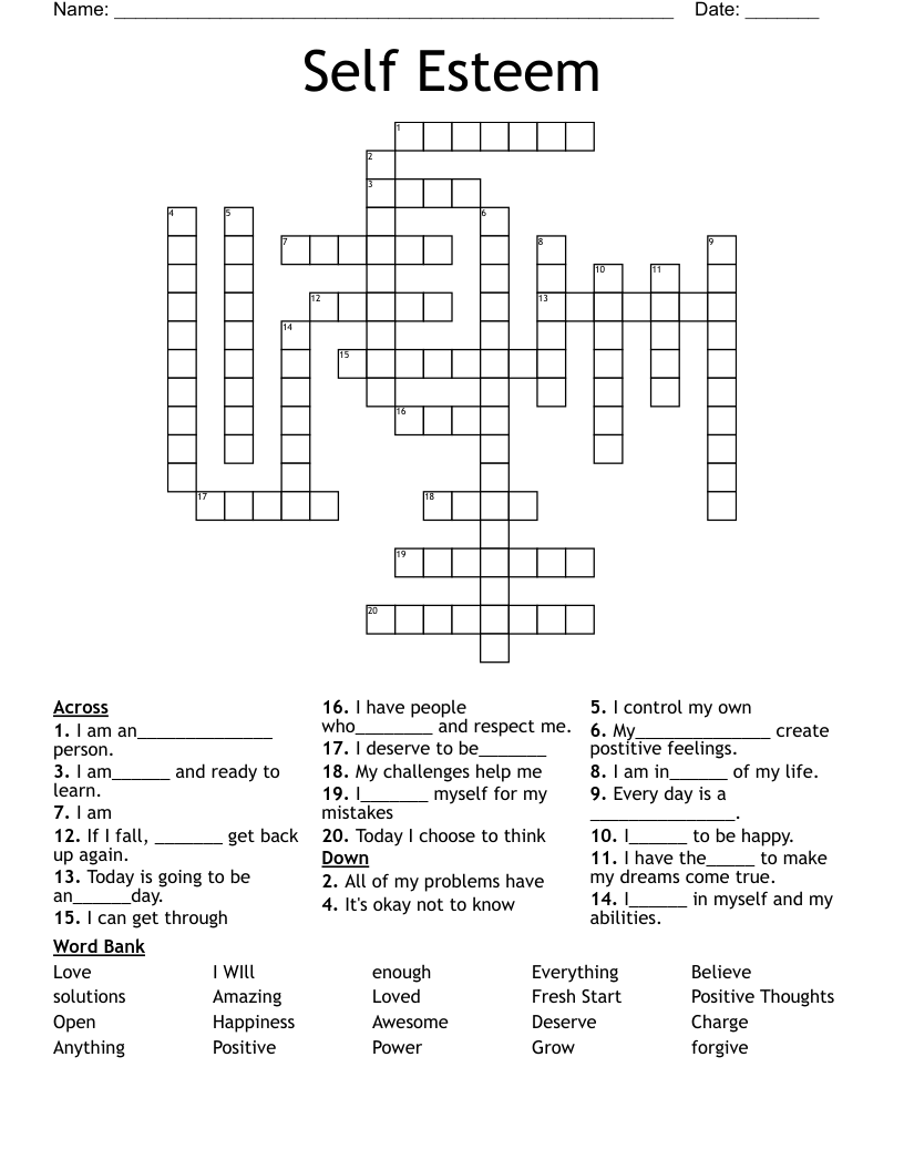 Self-esteem is essential for our mental and emotional well-being. Engaging in activities like solving a self-esteem crossword puzzle printable can be a fun and effective way to boost self-worth, confidence, and self-image. By incorporating such activities into our self-care routine, we can cultivate a more positive and empowered sense of self.