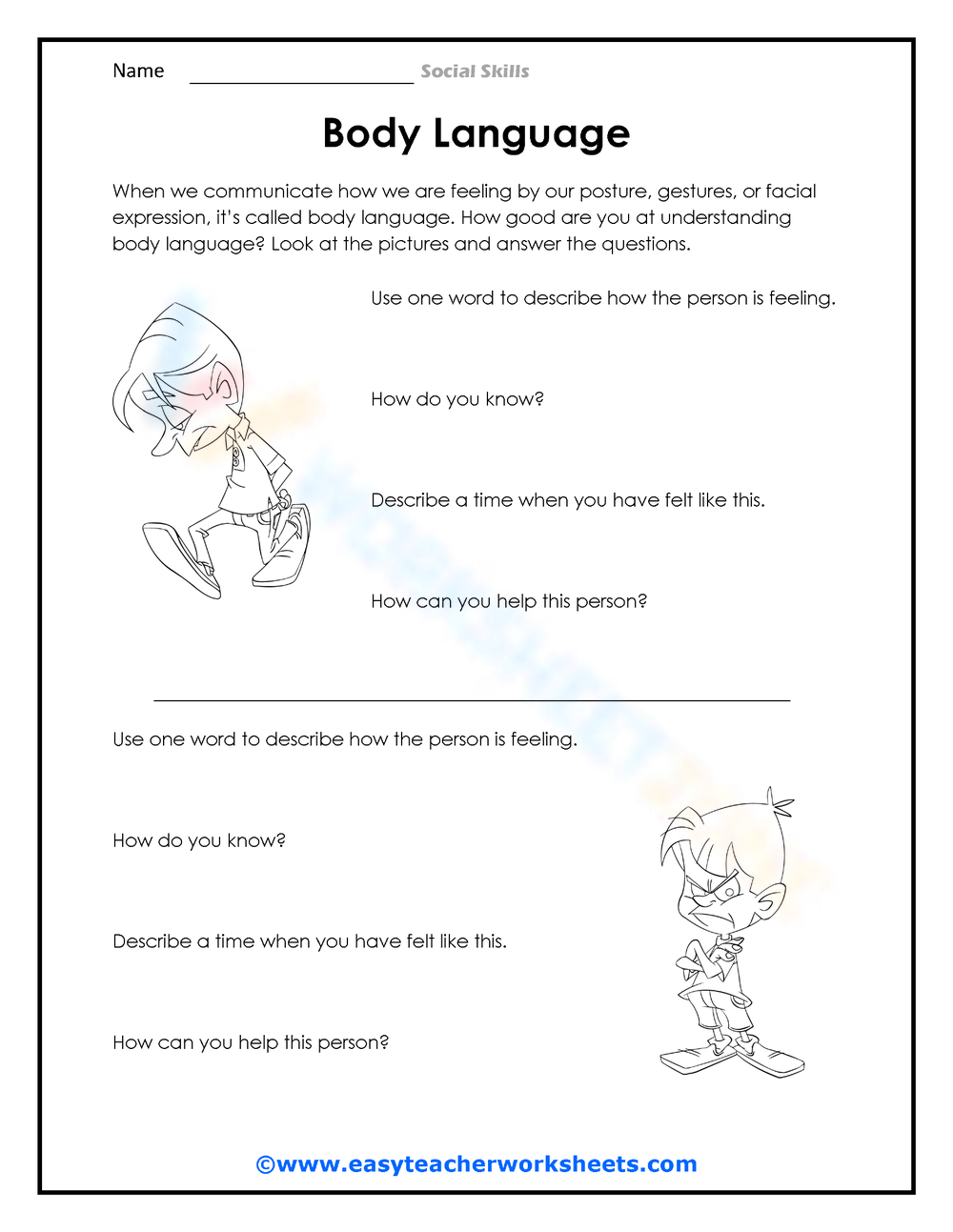 Download and Print Social Skills Worksheets Listed below