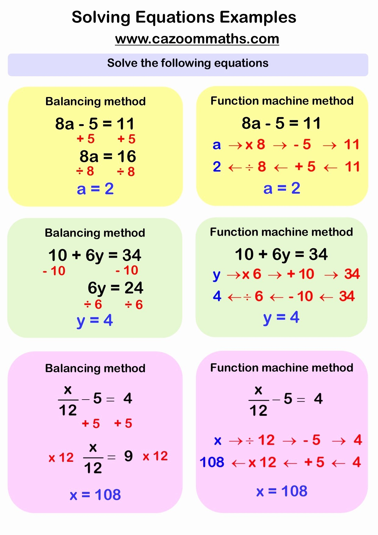 Solving Linear Equations A Worksheet Cazoom Maths Worksheets