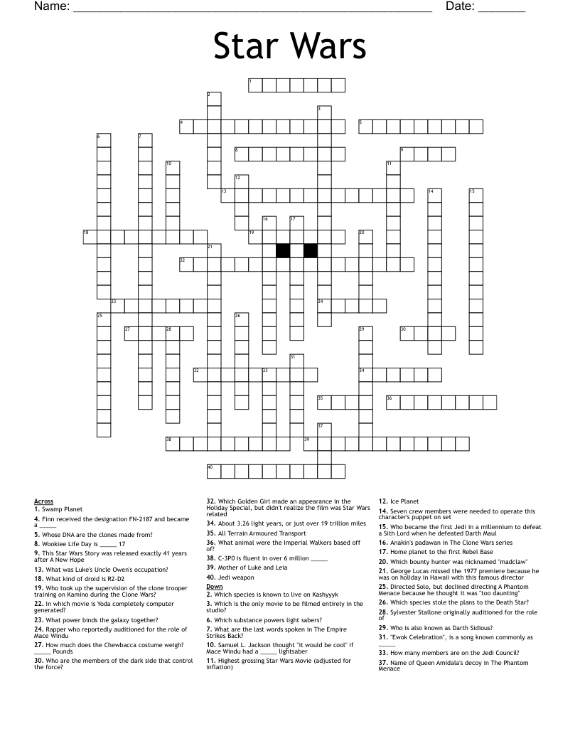 So why wait? Download your printable Star Wars crossword puzzles today and may the Force be with you as you embark on this thrilling puzzle-solving adventure in a galaxy far, far away!