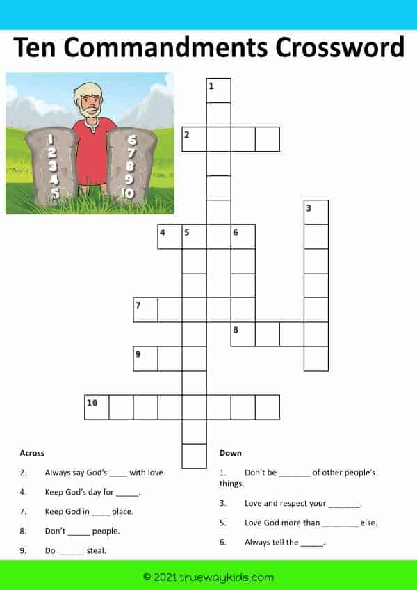 The crossword puzzle includes both across and down clues related to each commandment. Players will need to think critically and refer to their knowledge of the commandments to fill in the correct answers. This can be a fun and challenging way to engage with the principles set forth in the Bible.