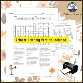Printable Thanksgiving Crossword Puzzle For Kids And Adults Crossword (www.etsy.com)