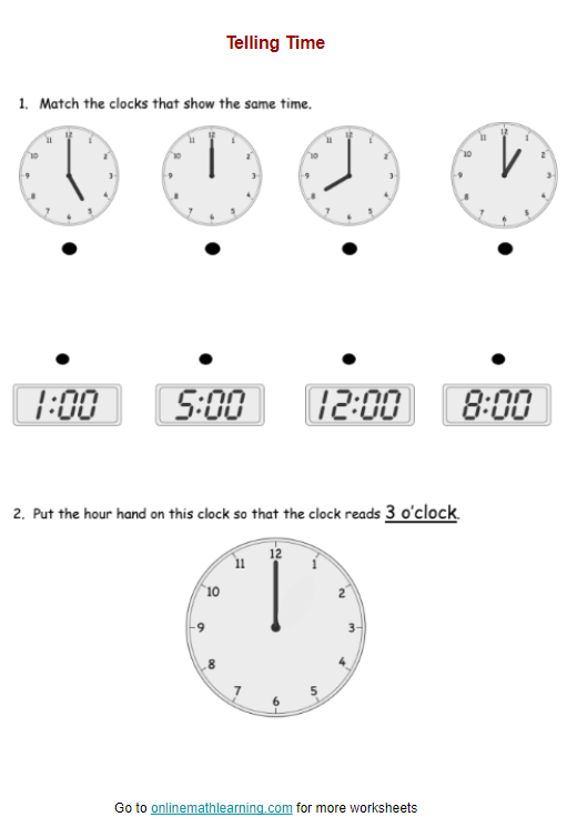 PDF Worksheets Telling The Time Printable WorksheetsPDF Worksheets Telling The Time Printable Worksheets (worksheets4u.com)