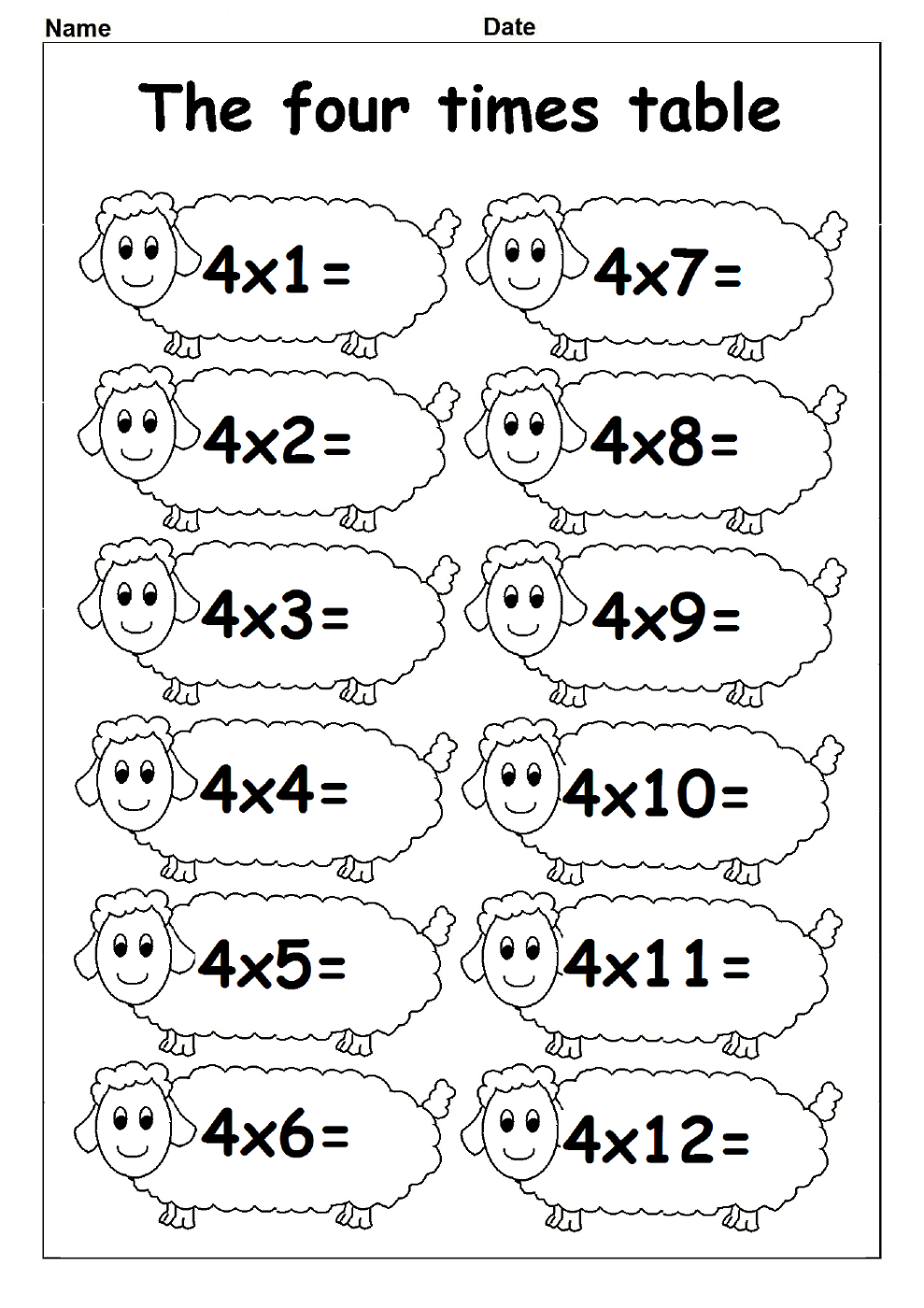 Printable 4 Times Table Worksheets Activity Shelter (www.activityshelter.com)