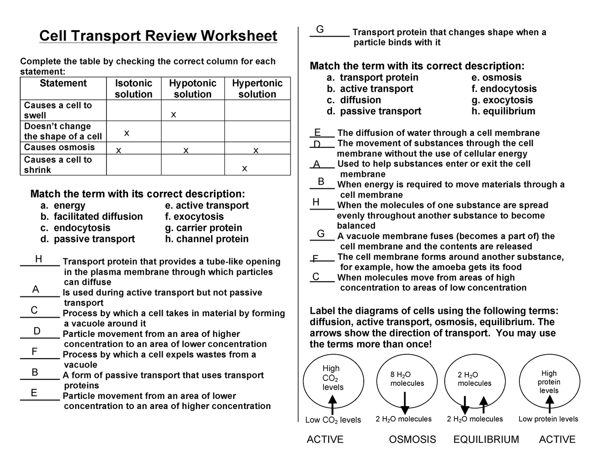 Cell Transport Review Worksheet Fill Online Printable Fillable