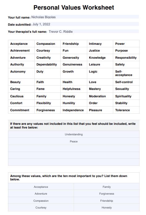 A values worksheet is a tool that can help individuals explore and define their core values. It provides a structured framework for reflecting on what matters most to them and gaining clarity on their priorities. This worksheet can be a valuable resource for personal growth, goal setting, and decision making.