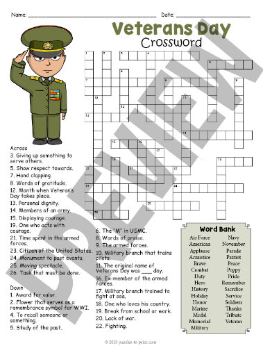 Veterans Day Crossword Puzzles Free Printables Worksheets Word SearchesVeterans Day Crossword Puzzles Free Printables Worksheets Word Searches (eveteransday.com)
