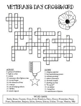 VETERANS DAY Crossword Puzzle Worksheet Activity By Puzzles To PrintVETERANS DAY Crossword Puzzle Worksheet Activity By Puzzles To Print (www.teacherspayteachers.com)