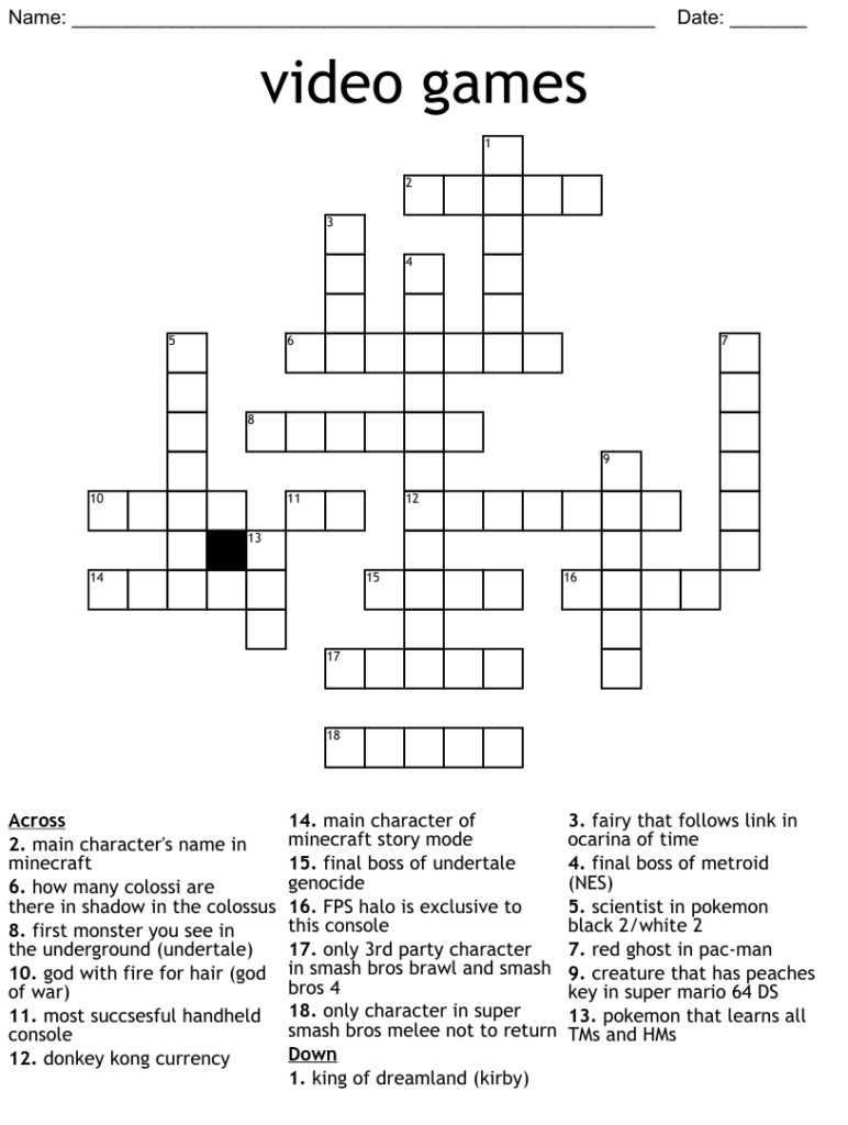 Video games have become a popular form of entertainment for people of all ages. Whether you’re a casual gamer or a hardcore fan, there’s no denying the appeal of solving puzzles related to your favorite games. One fun way to test your knowledge of video game trivia is by completing a video game crossword puzzle printable.