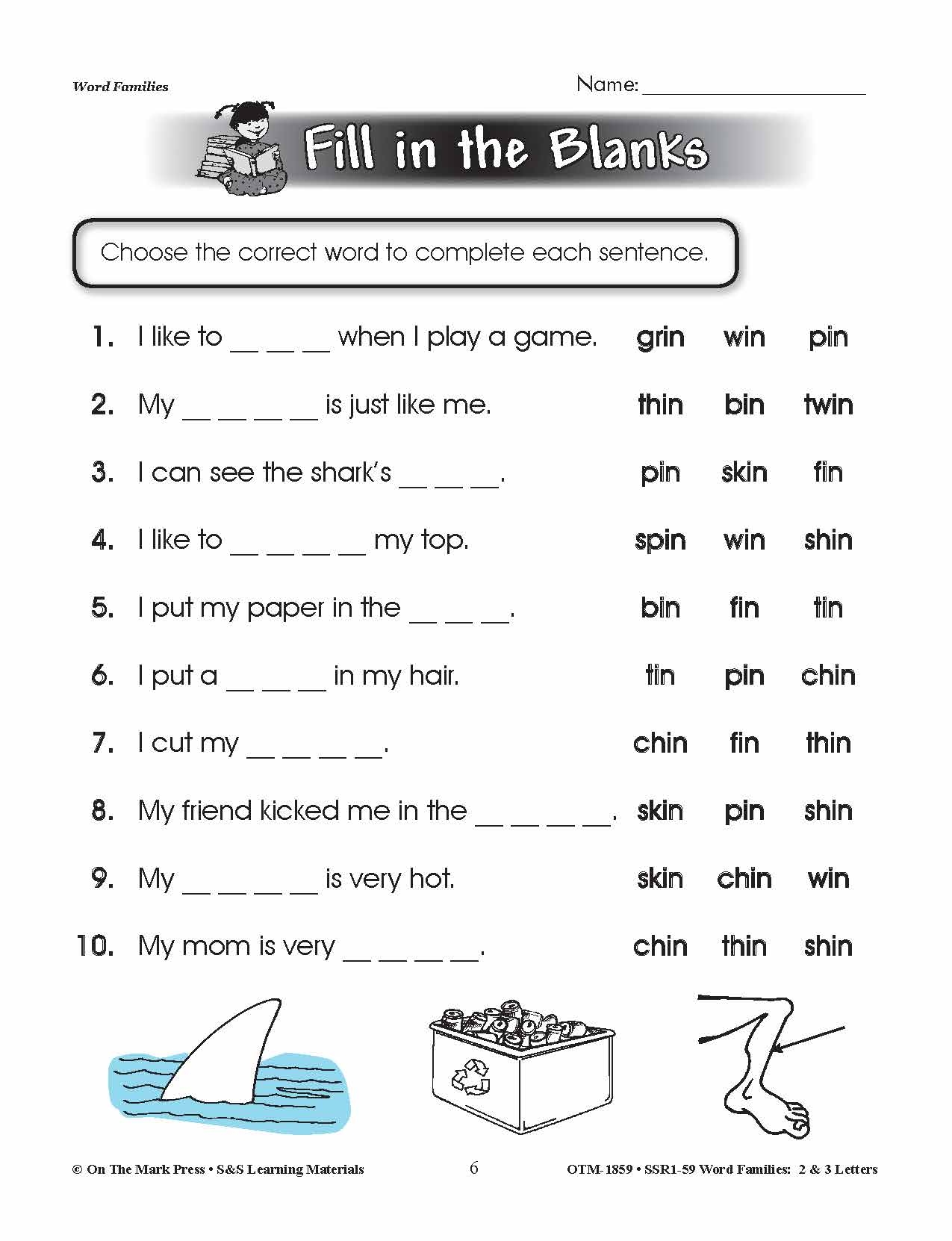 Download and Print Word Family Worksheets Listed below